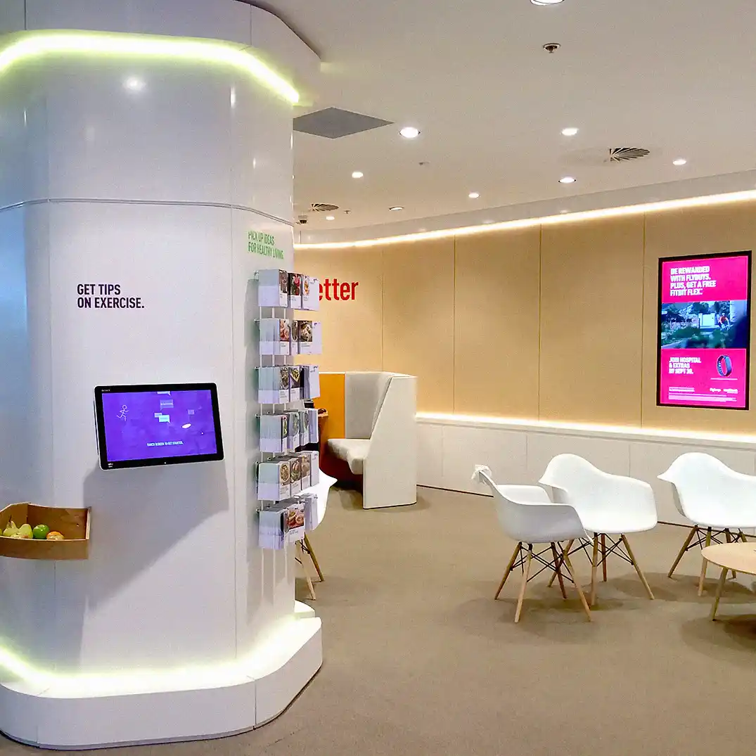 Interactivity designed and developed a total solution that consists of both Wayfinding Totems, Digital Screens and Touch Screens. With the totems designed specifically for Blue Cross keeping in mind DDA compliance and the user types of the Kiosks, Interactivity delivered a truly fantastic solution. All the control of the devices and content are on a single CMS platform, allowing marketing to change their digital media content, messaging and direction in one place via a their web-based CMS.