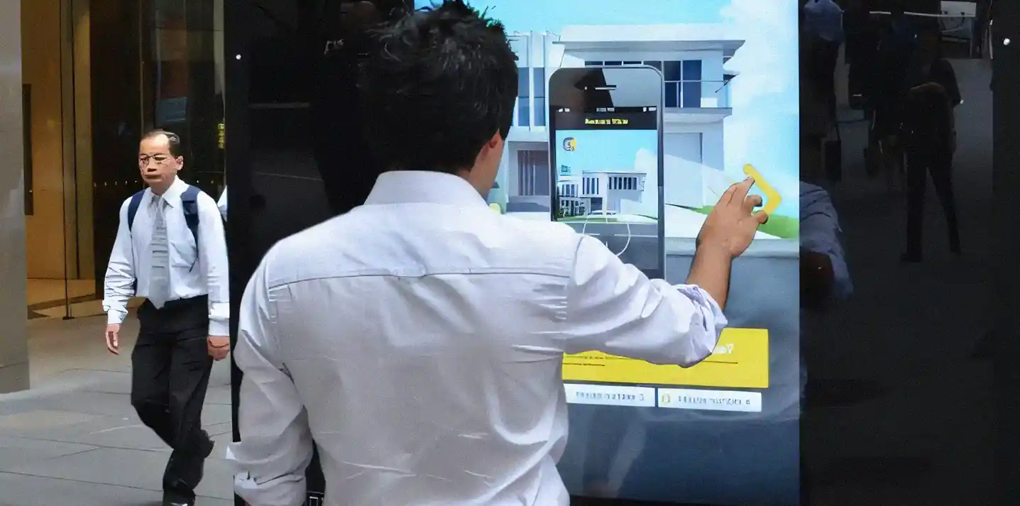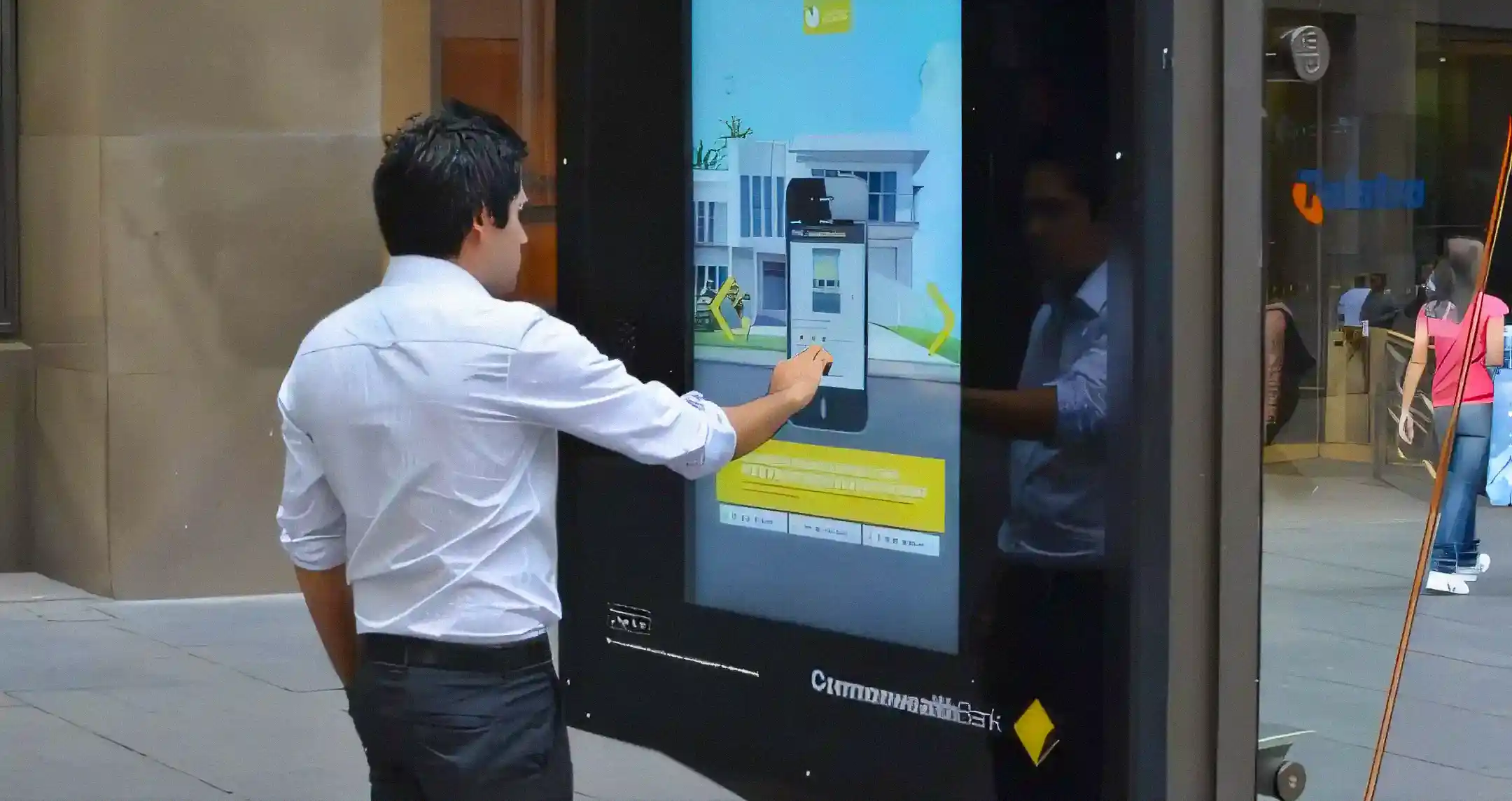 From November of 2011, pedestrians in Sydney and Melbourne can operate the Commonwealth Bank’s iPhone property app from 55-inch touchscreens located in the street. The rollout is a marketing move to promote smartphone apps and games by making them playable on electronic billboards.