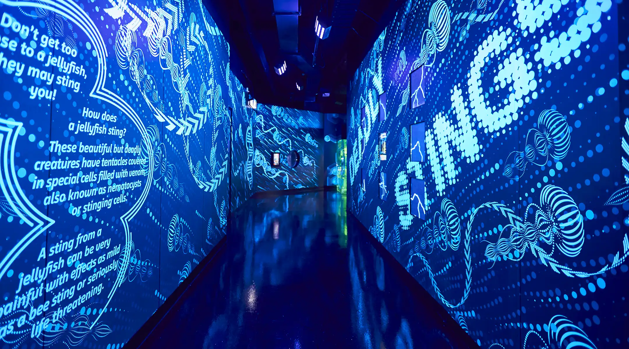 Guests better move fast through the Deadly Stinger zone – using our Edison Panels which mimic lighting & the jellyfish sting - at the same time learning about the world's most dangerous Jellyfish species.