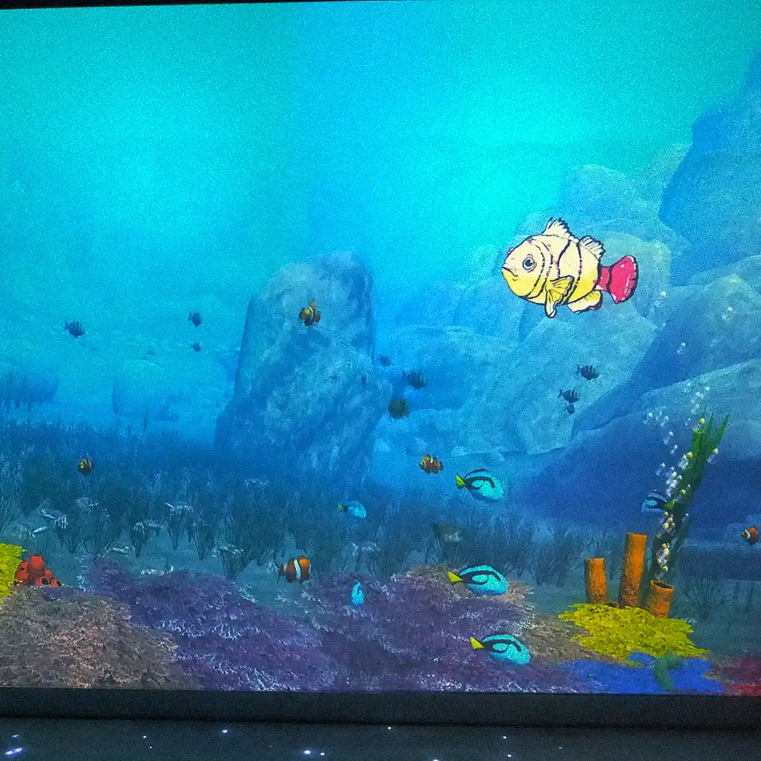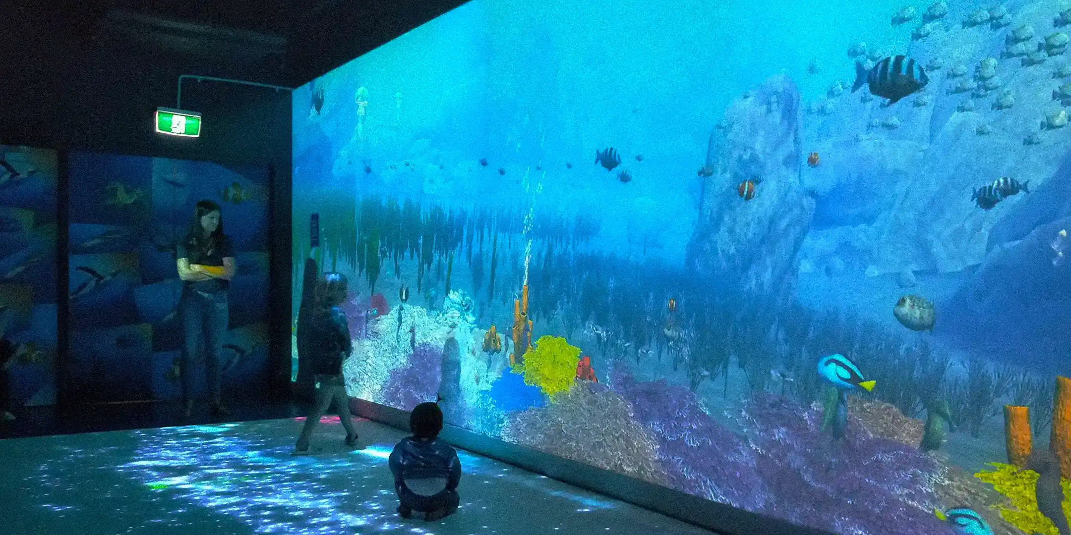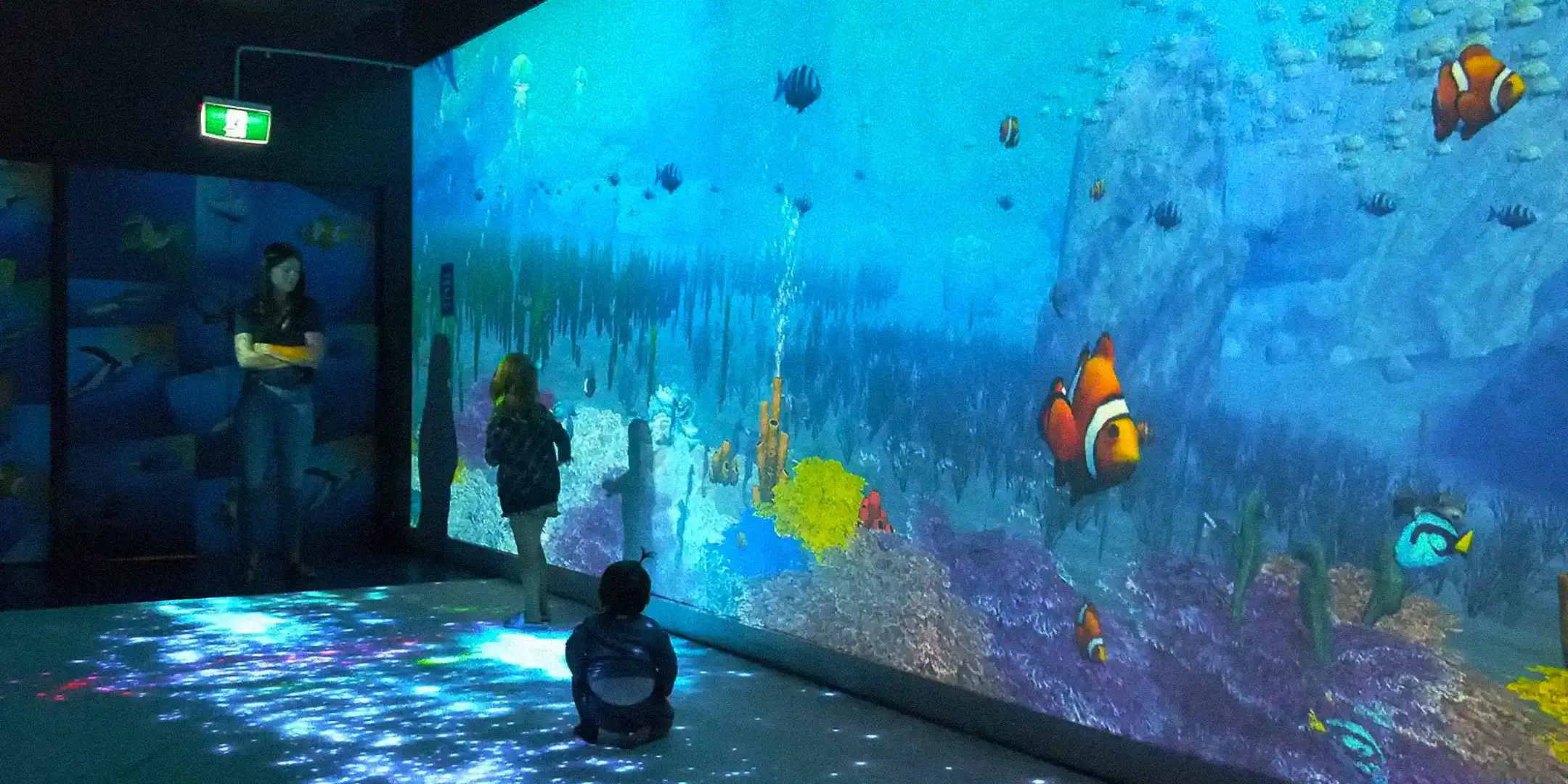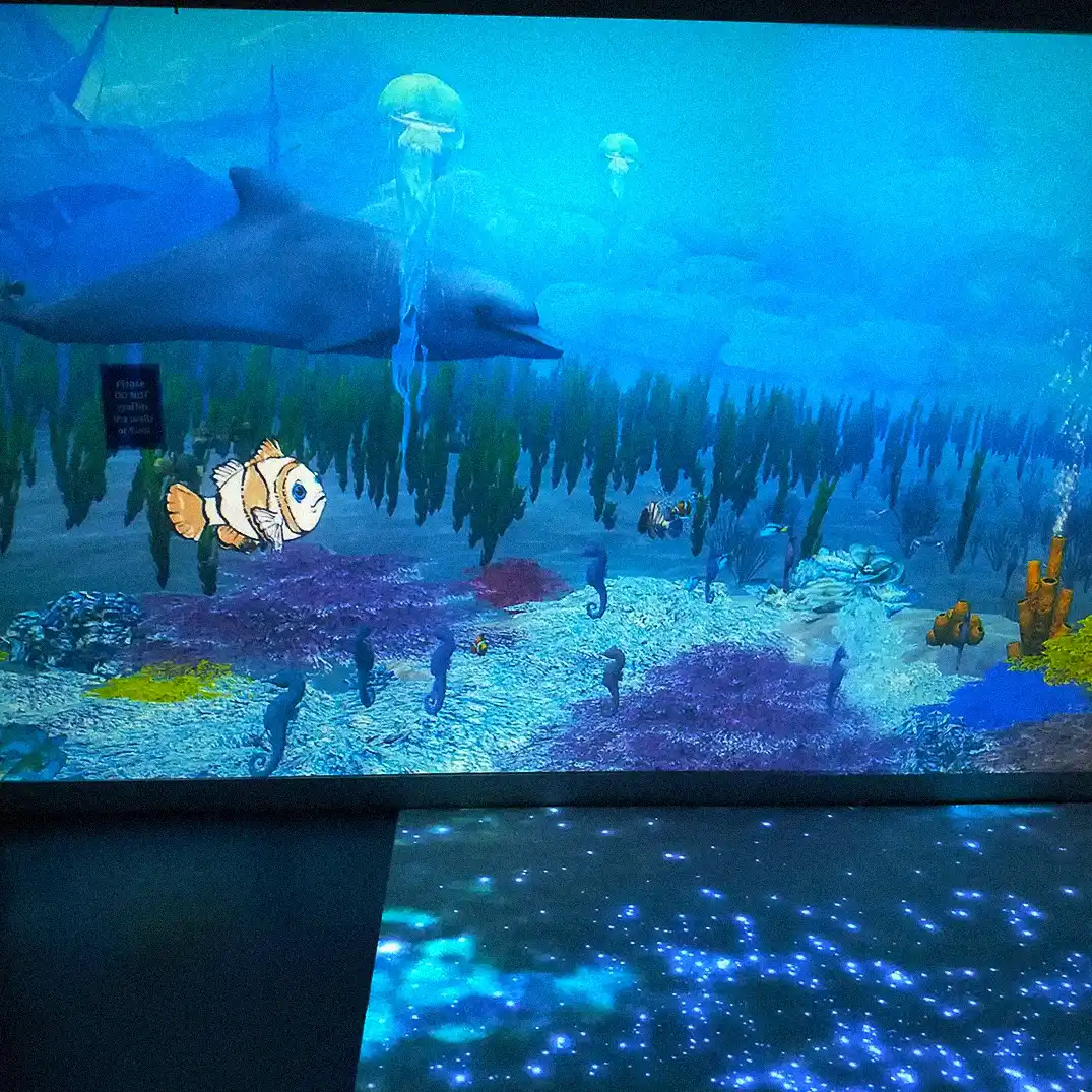 As well as 6 kids tablets that have 3 games dedicated to the oceans (cleaning up and exploring them) as well as a fish colouring in that you can then take a selfie of and then your coloured in fish goes up to the interactive wall as well as your selfie is the bubbles that the fish blows out!
