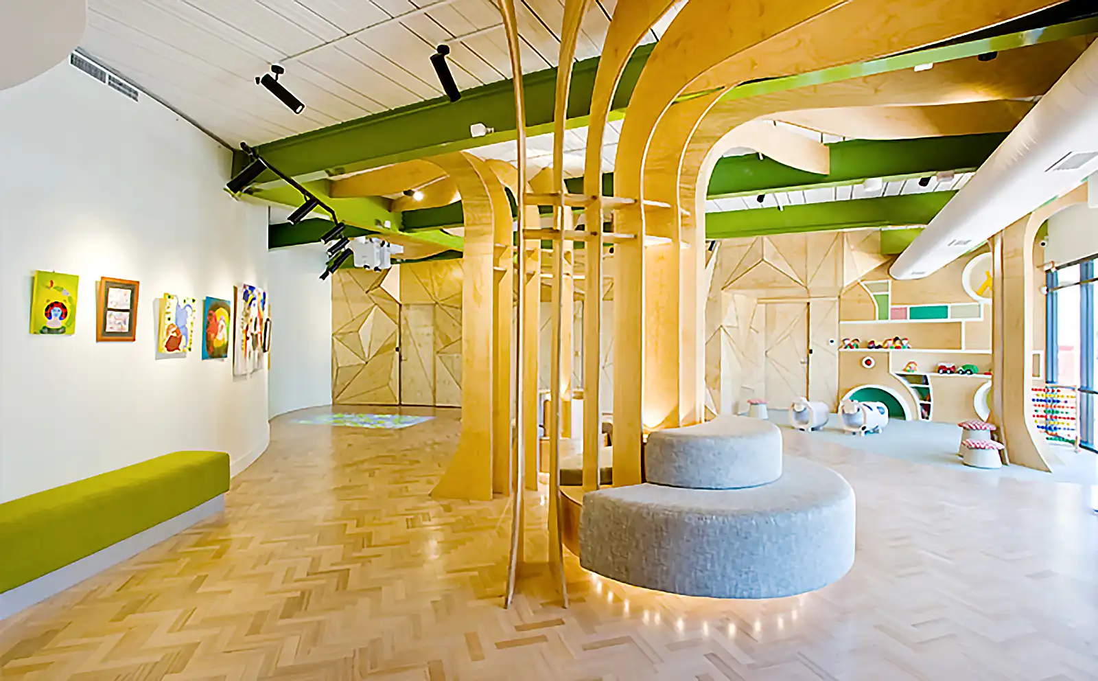 A range of stimuli were provided by Interactivity, such as a soccer field where you can kick the ball, shoot a goal or kick it back and forth between two people. These interactive elements calm and distract, proving to be worthy of the sensory gallery and its purpose.